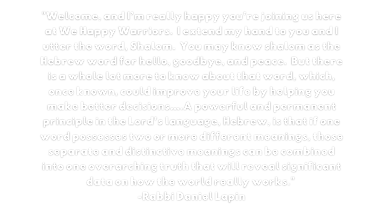We Happy Warriors is an online membership platform led by Rabbi Daniel & Susan Lapin.Â